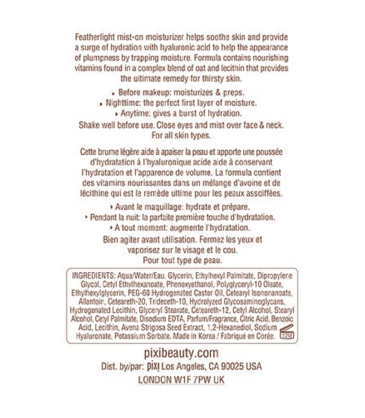 Pixie skintreats hydrating milky mist